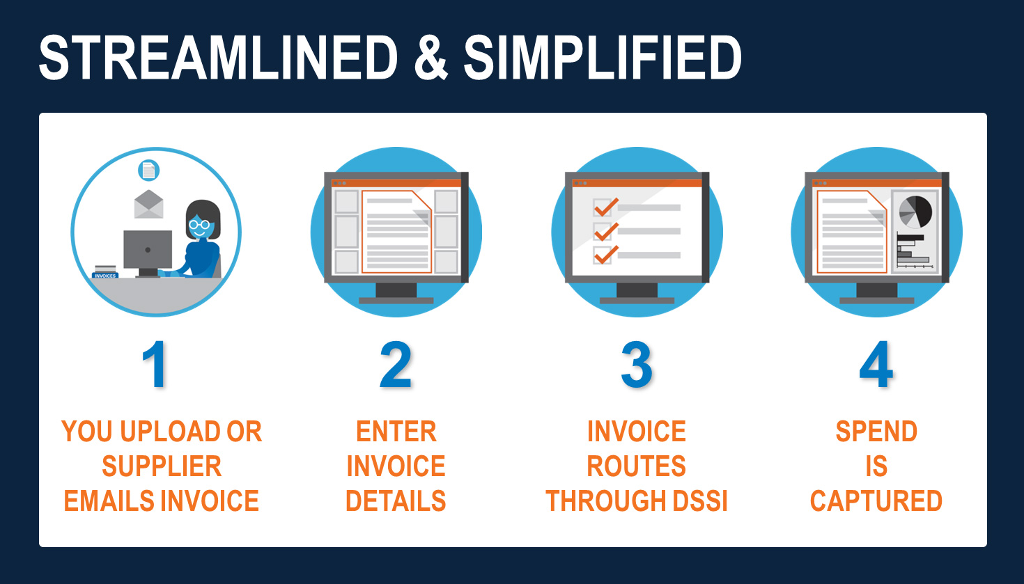 Many organizations using the DSSI platform can save $10,000 or more annually. The evidence shows that by digitizing transactions through the DSSI platform, suppliers are more easily able to fulfill orders and send the invoice back to the integrated vendor. When the invoice arrives, DSSI also has tools to automate that process. DSSI Capture™ eliminates manual entry, reduces errors, and speeds up payment cycles, leading to significant cost savings and operational improvements. It also allows organizations to capture their regional and local vendor spend for reporting and decision making.