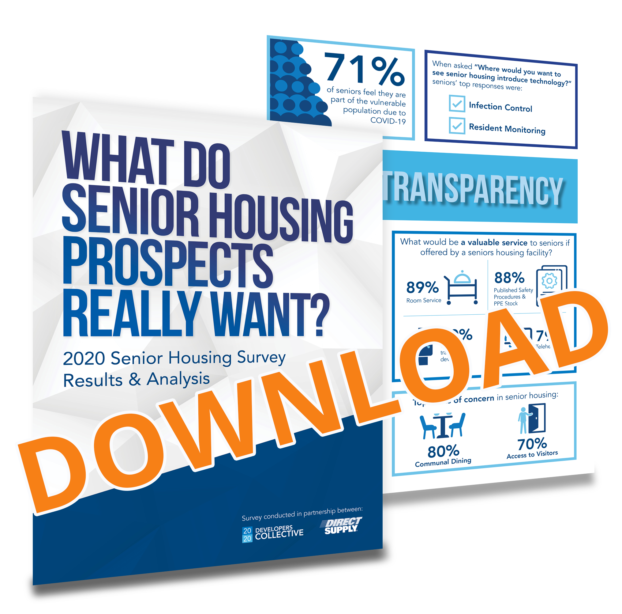To answer this question, the Developers Collective partnered with Direct Supply to conduct the 2020 Senior Housing Survey. The goal of the survey was to discover the perspective of seniors and adult caregivers on senior housing as a future residential option, as well as uncover insights for the senior housing market.